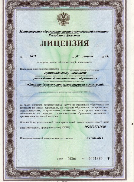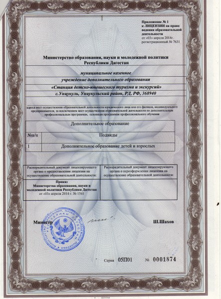 Полное наименование образовательной организации* Муниципальное казенное учреждение дополнительного образования «Станция детско-юношеского туризма и экскурсий» с.Унцукуль