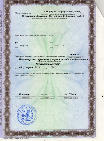 Адрес местонахождения образовательной организации* 368940, Унцукульский район, с.Унцукуль ул. Гаджимагомеда Якубова 26